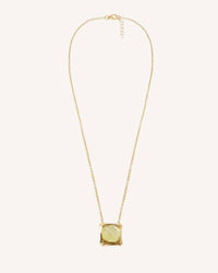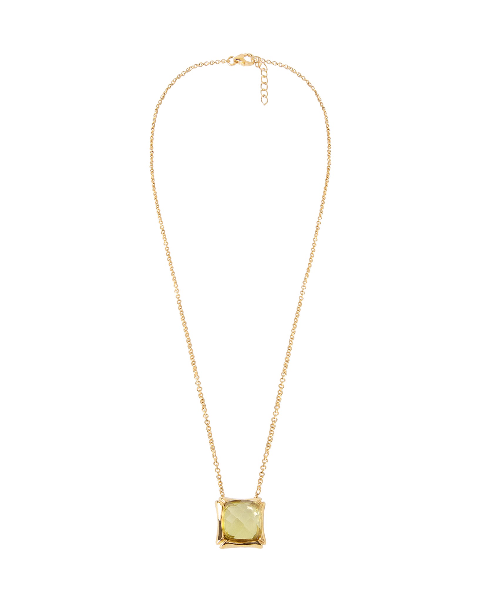 El icónico collar Bamboo de Avellaneda está hecho en España con plata de ley bañada en oro. Tiene una elegante estructura con cuarzo limón colgante.