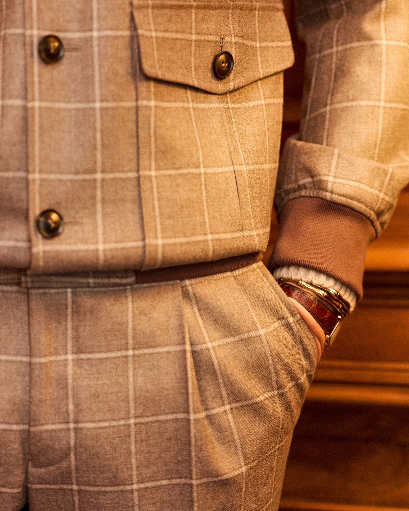 Chaqueta confeccionada en lana italiana Dino Filarte, reconocida por su suavidad, resistencia y elegancia natural. Su diseño a cuadros en tonos neutros aporta un equilibrio perfecto entre sofisticación clásica y estilo contemporáneo.